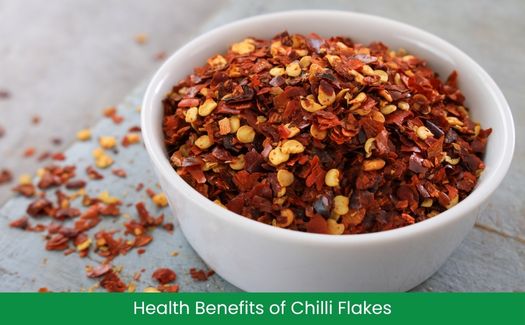 Chilly flakes, made from dried red chillies, are often used in cooking for their spicy kick. They contain capsaicin, which can help to increase metabolism, support fat burning, and improve circulation. Chilly flakes also support digestive health and may have antimicrobial properties that help fight infections.