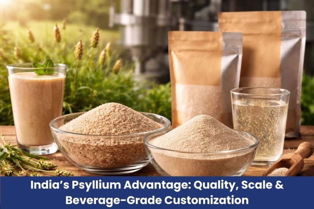 Psyllium husk in India production remains the global benchmark, with the country accounting for nearly 85% of the world’s supply. This dominance is not merely a matter of quantity but of specialized expertise in cultivation and processing. The versatility of psyllium husk allows beverage formulators to create products that support digestive regularity, heart health and weight management without compromising the clean-label promise that modern consumers demand.